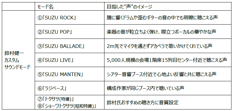 1.鈴村健一氏の“声”に特化してチューニングした、全8種類のカスタムサウンドモード※1