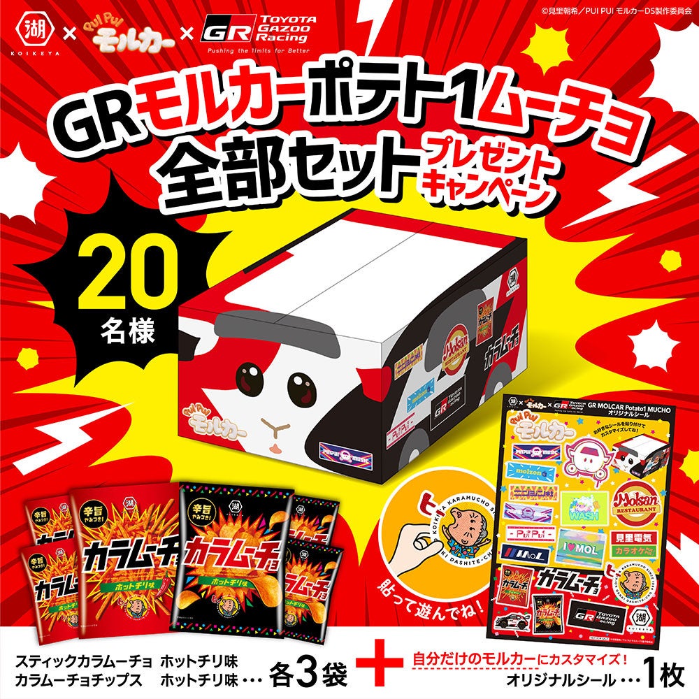 湖池屋 コイケヤ【公式】(@koikeya_cp)、TOYOTA GAZOO Racing(@TOYOTA_GR)、PUI PUI モルカー【公式】(@molcar_anime)の3つのアカウントをフォローしていただいた上で、キャンペーン投稿をリポストしてください。
