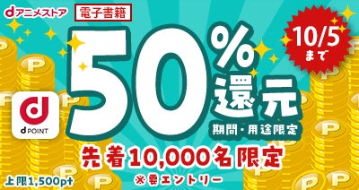 キャンペーン実施期間内に、dアニメストア(ブック)でご購入頂いた商品の購入金額(税別)に対して、dポイント(期間・用途限定)を後日進呈いたします。