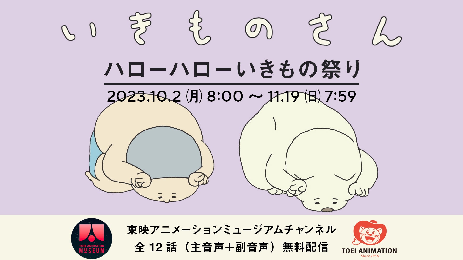ベルリン国際映画祭短編部門銀熊賞など数々の受賞歴を持つ和田淳が手掛けるアニメ『いきものさん』。まだ本作品のことを知らない方やここまで応援いただいた方にお送りする特別企画「ハローハローいきもの祭り」を開催。第1弾として、10月2日(月)よりYouTube「東映アニメーションミュージアムチャンネル」にて全12話を公開致します。