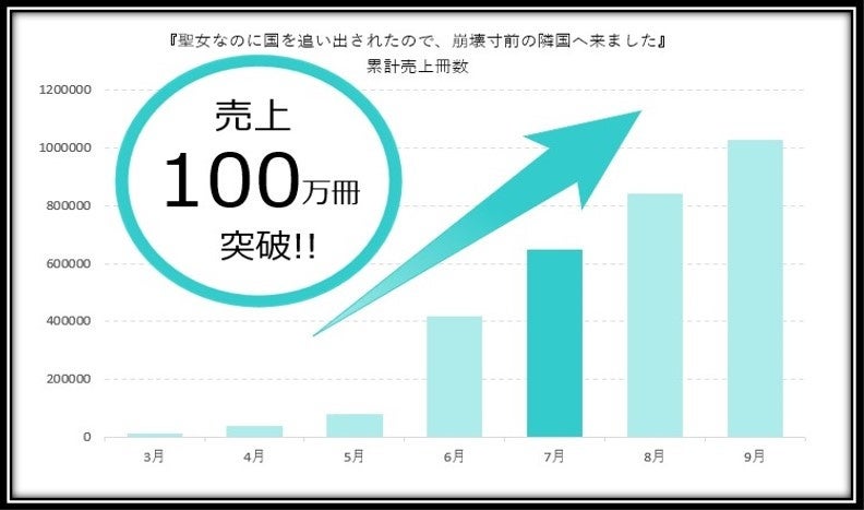 驚異的な勢いで大ヒットにより累計売上冊数は100万冊突破で右肩上がりに伸びています! 特に5月から6月にかけては販売数が5倍も増えました。現在も人気爆発中で聖女の勢いは止まりません。
