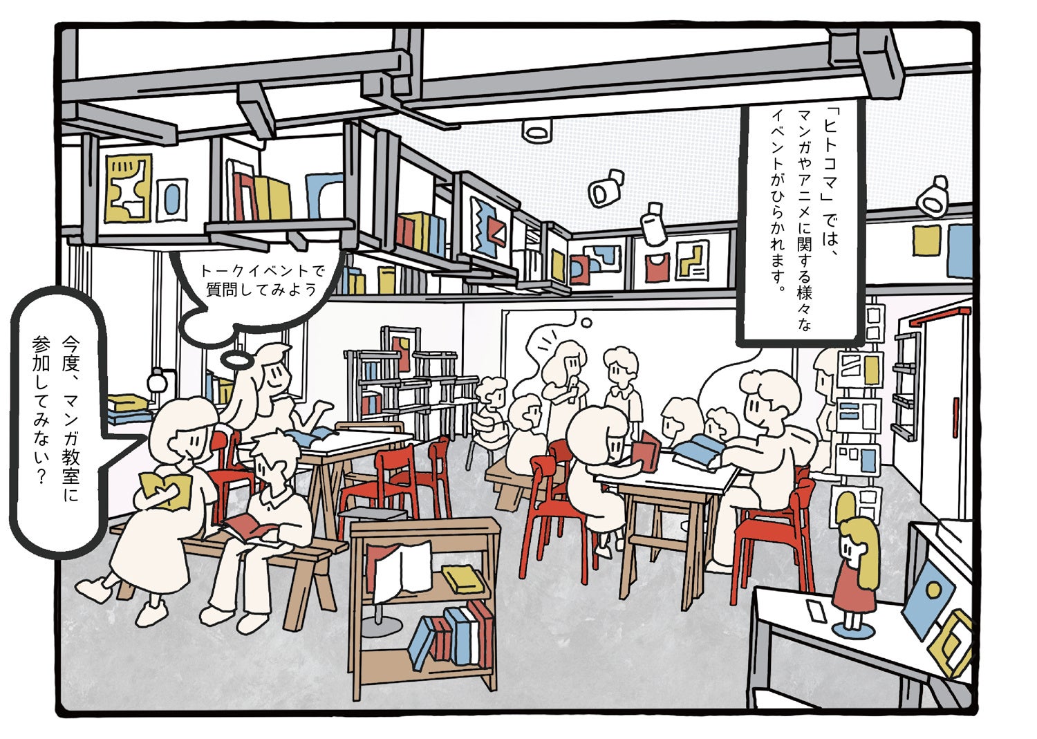 「マンガやアニメが好き」「イラストを描いてみたい」「声優になりたい」「興味はあるけど、どうすればいいのかわからない」という方々に、イベントやワークショップを通してマンガやアニメ等に〈触れる〉〈学ぶ〉機会をつくり、みなさんの初めの“ヒトコマ”のお手伝いをします。