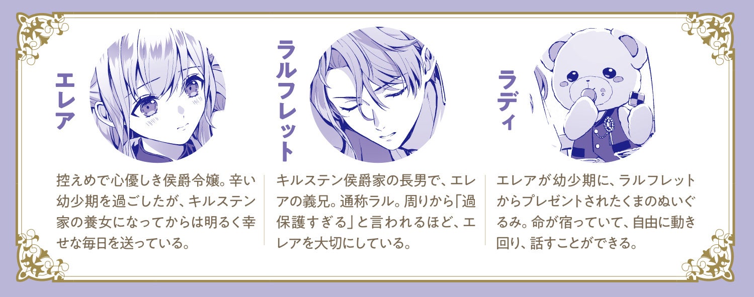 侯爵家の人々に愛され、ラルに大事にされ、命が宿ったくまのぬいぐるみ・ラディと一緒に過ごす日々が、エレアは幸せだった。