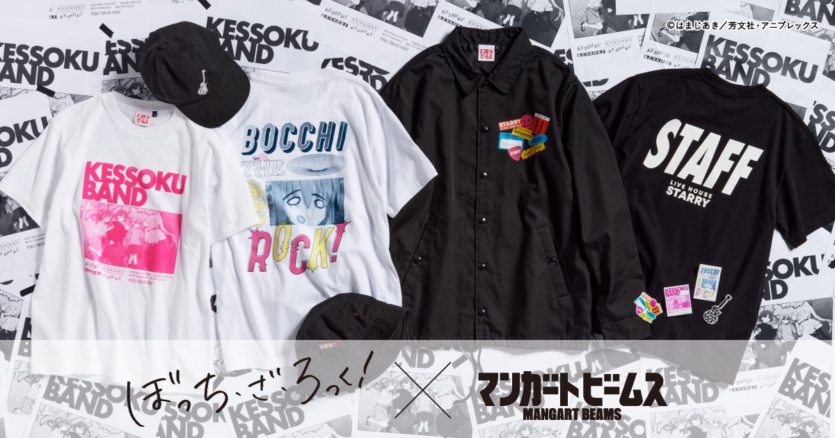 TVアニメ『ぼっち・ざ・ろっく!』の主人公である“ぼっちちゃん”こと後藤ひとりが所属するバンド『結束バンド』のアーティスト写真を落とし込んだTシャツや、本編に登場するライブハウス「STARRY」が、“もしもスタッフTシャツを作ったら”という架空のストーリー仕立てのTシャツとコーチジャケットなど、作品の要素をふんだんに盛り込んだラインアップとなっています。