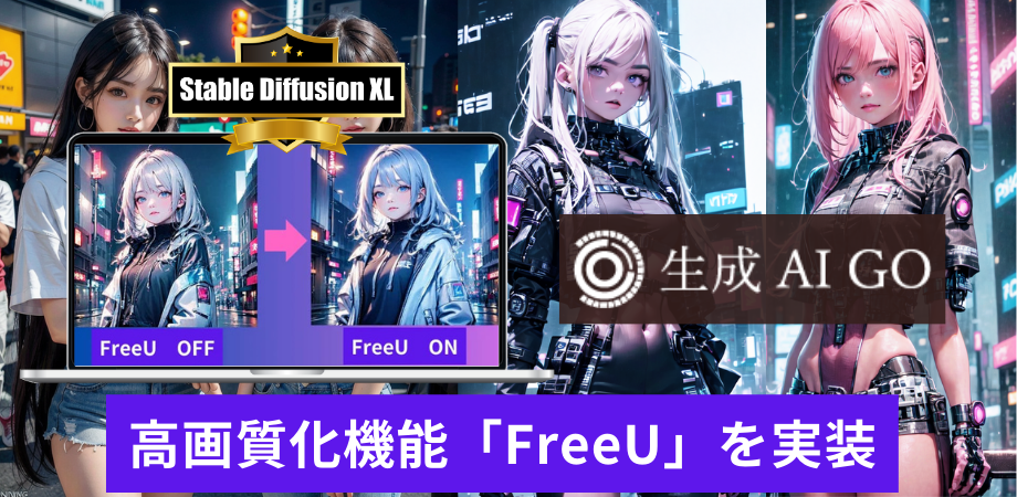 近年、生成AI技術は多岐にわたる領域で注目され、実用化が進んでいます。「生成AI GO」は、最先端技術を手軽に利用できる形で開発されました。私たちの製品は高性能なGPUを活用し、低コストで高処理能力を提供します。最新のアップデートには、最新の高画質化機能である「FreeU」を実装しました。