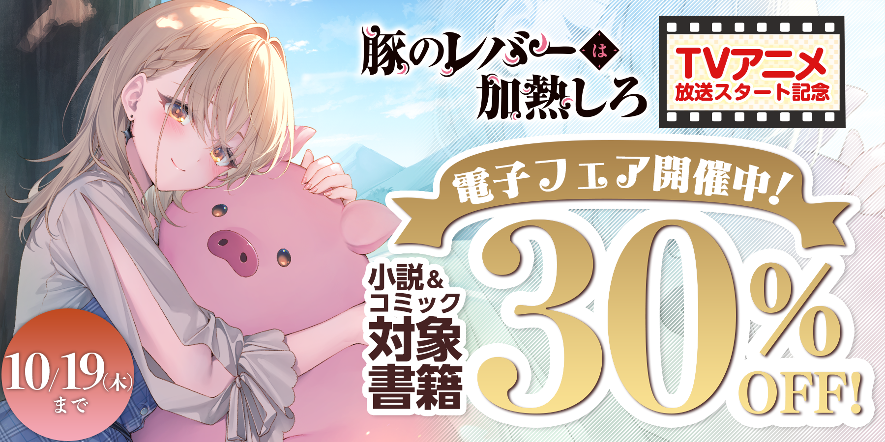 10月6日(金)~10月19日(木)の期間中、小説『豚のレバーは加熱しろ』1~7巻&コミック『豚のレバーは加熱しろ』1~4巻がお得に読める電子フェアを開催いたします。