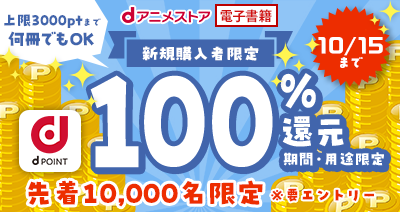 ※dアニメストア会員が毎月最初に購入した1冊目は、「毎月1冊dポイント100%還元キャンペーン」が適用され、新規購入者向けキャンペーンは対象外となります。