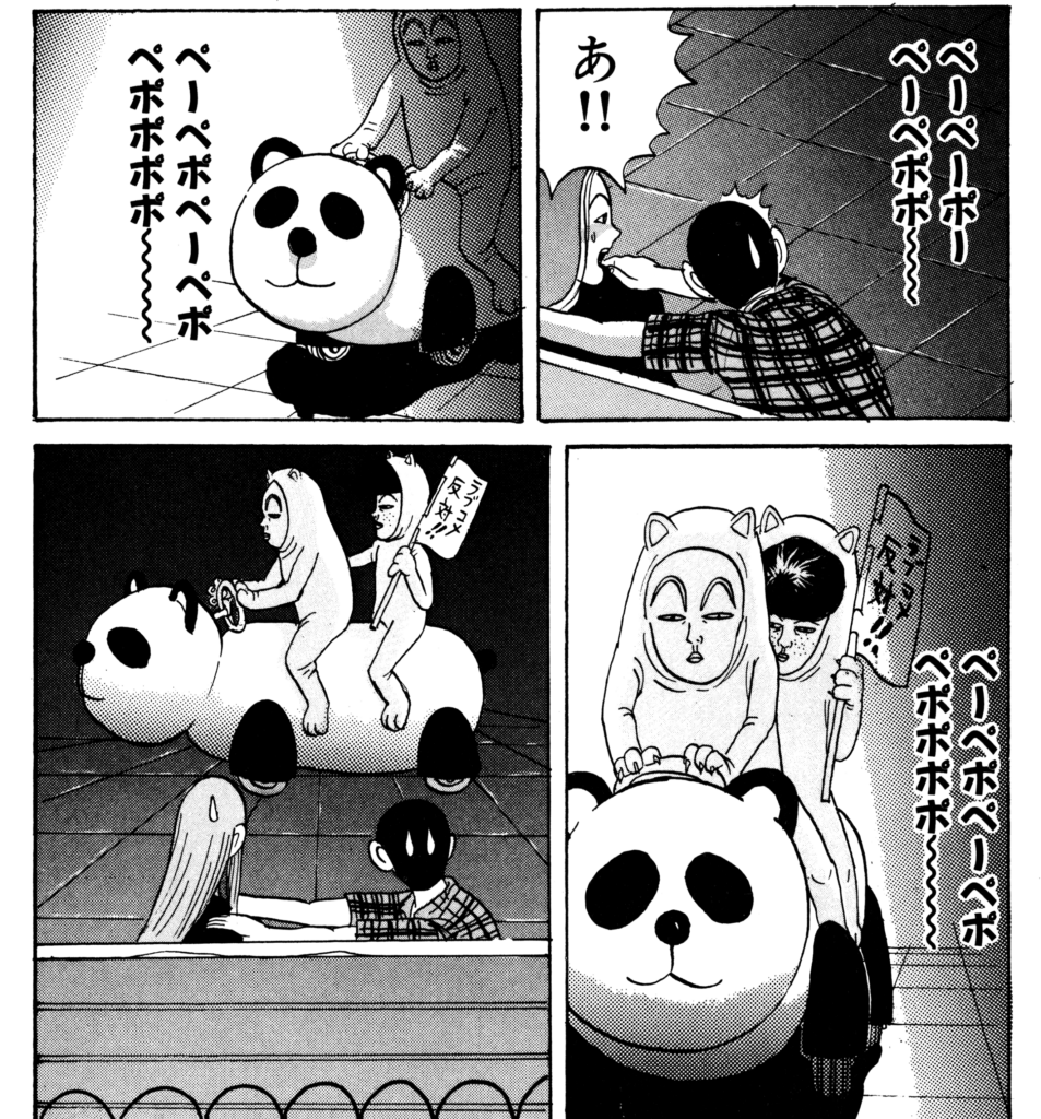 稲中と言えば前野と井沢による泣く子も黙る地獄のチーム「死ね死ね団」。登場時のインパクトの強さゆえに連載当時に漫画の影響を受けてカップル妨害行為を行ったりパンダカーに乗って物真似をした者が数多くいたとかいないとか?