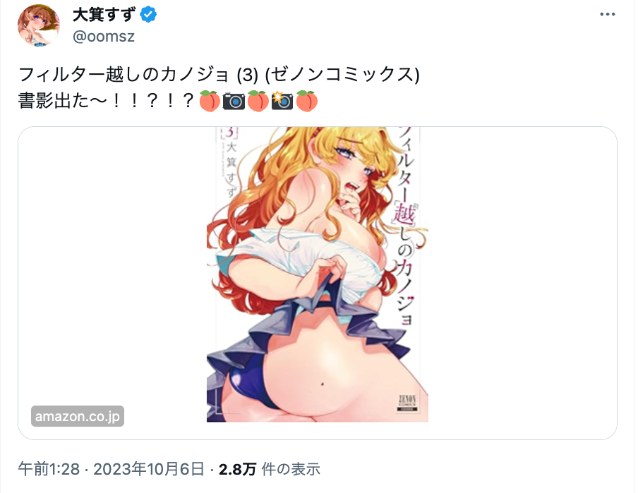 『フィルター越しのカノジョ』作者・大箕すず が自身のSNSにて書影の公開を投稿。