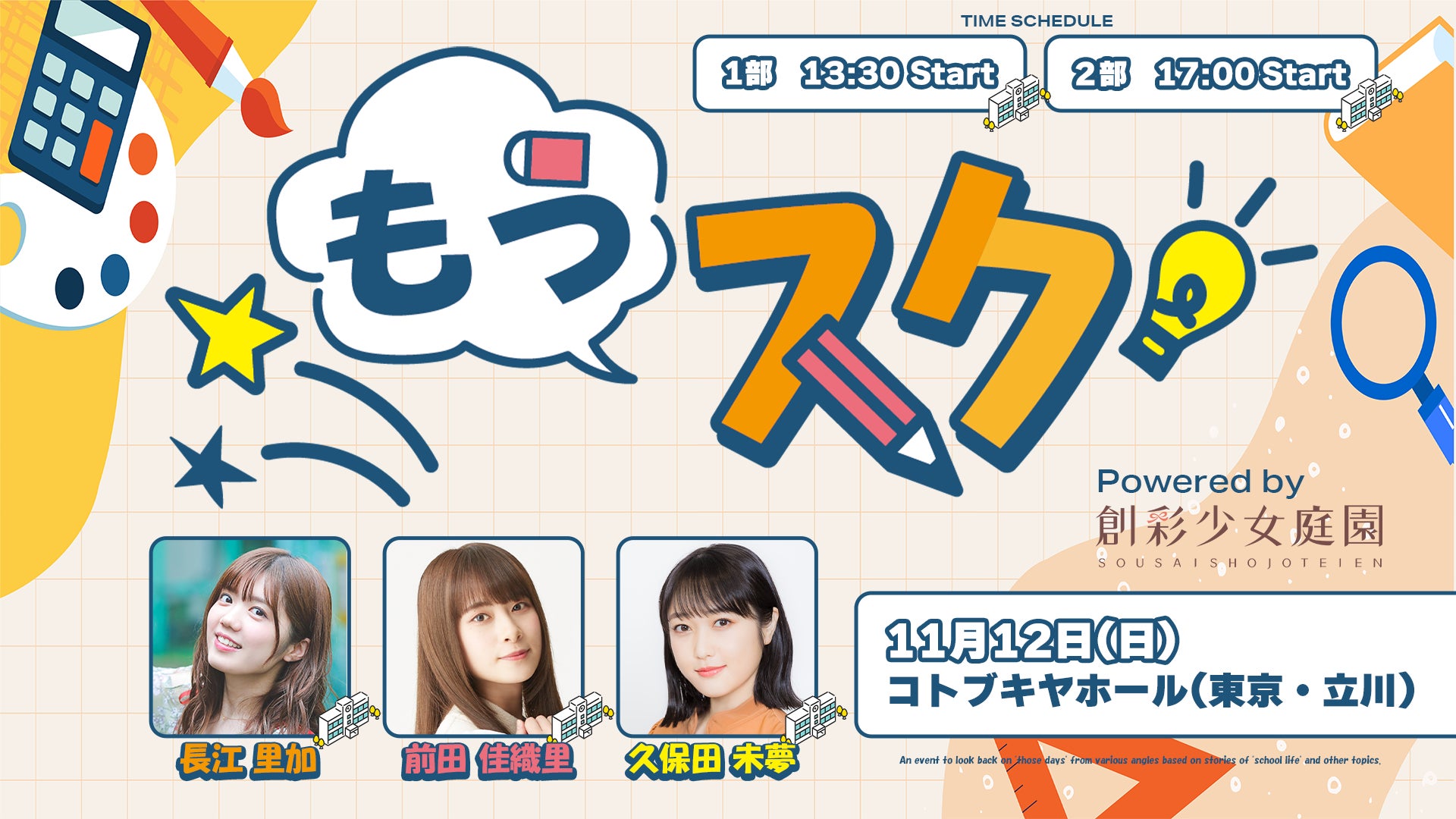 「あの頃」の「学生生活」をテーマにした声優トークイベント「もうスク Powered by 創彩少女庭園」が2023年11月12日(日)に東京・立川にあるコトブキヤホールで開催決定!
