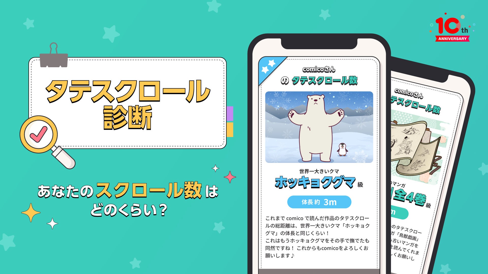 あなたが今までcomicoで読んだWEBTOONの「総距離」や、一番読んだ作品を診断! あなたがスクロールしたのはホッキョクグマ級? 富士山級? それとも…!?