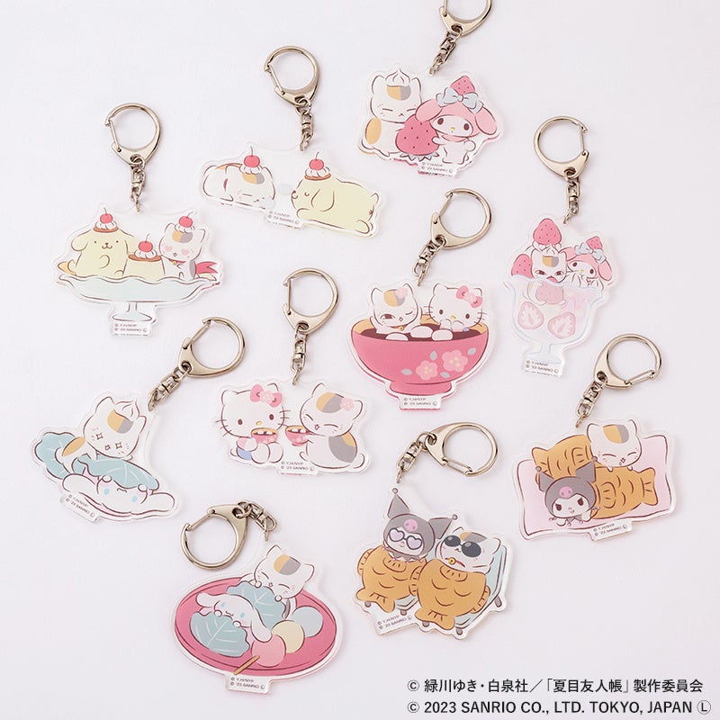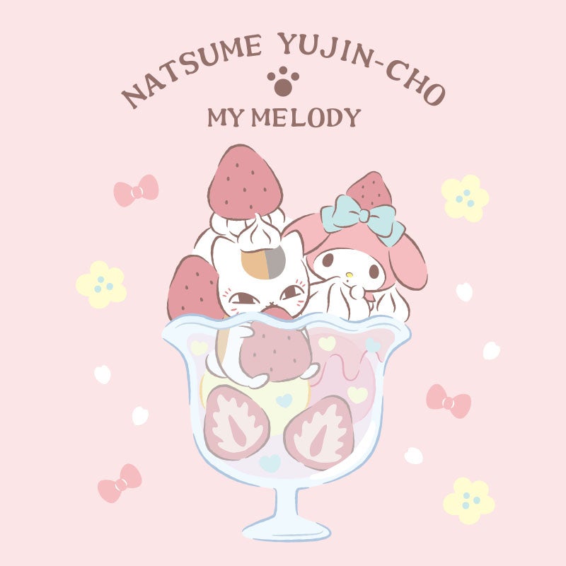 ニャンコ先生と株式会社サンリオのキャラクターたちのスイーツをテーマにしたコラボデザインのグッズ