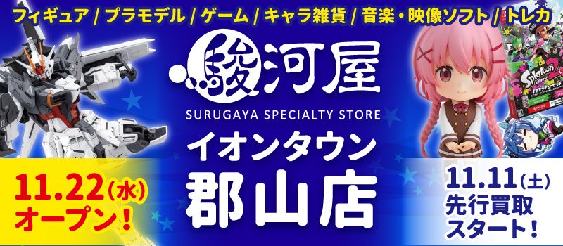11月22日(水)JR郡山駅から徒歩9分、イオンタウン郡山内に「駿河屋 イオンタウン郡山店」がオープンします!