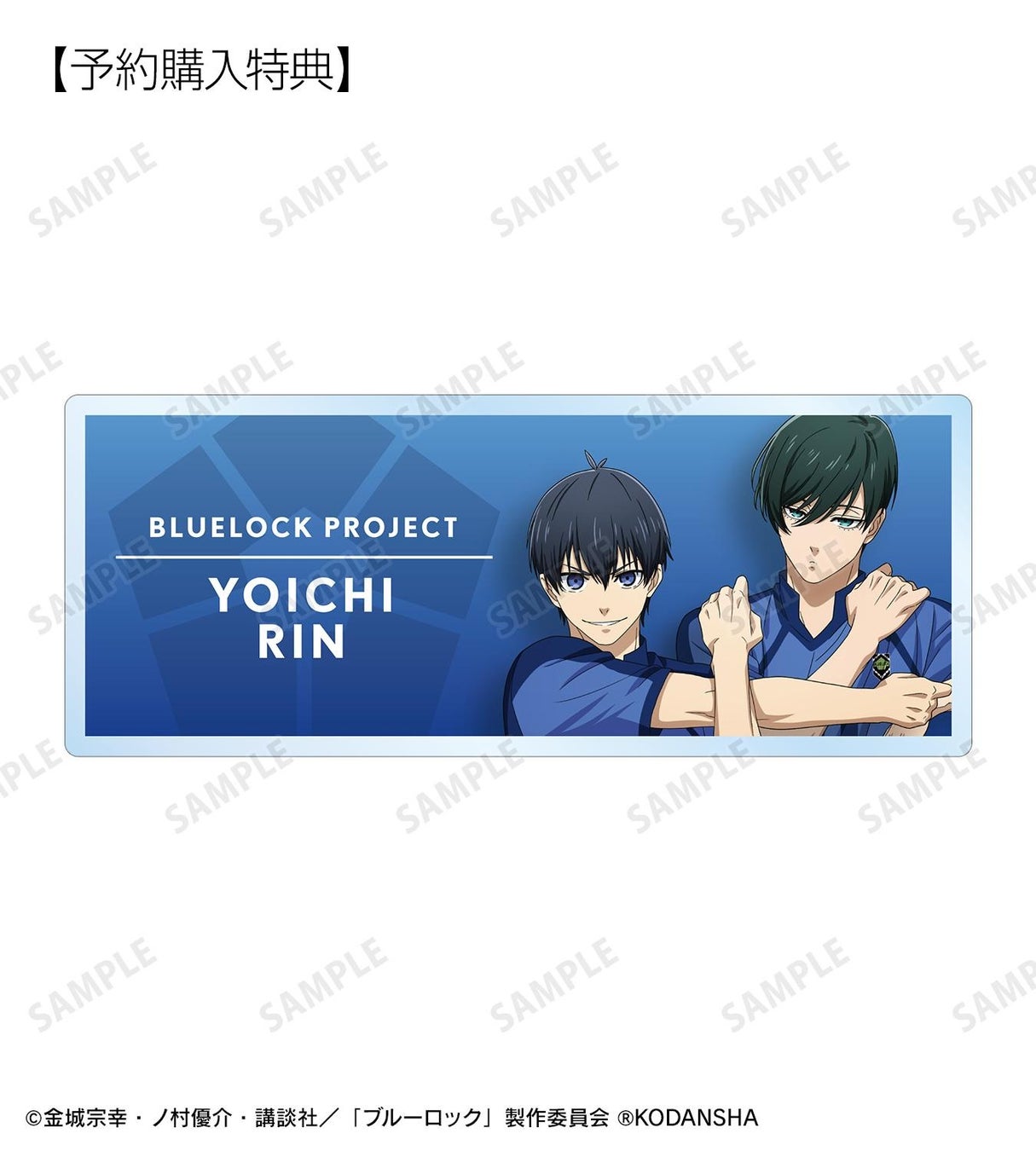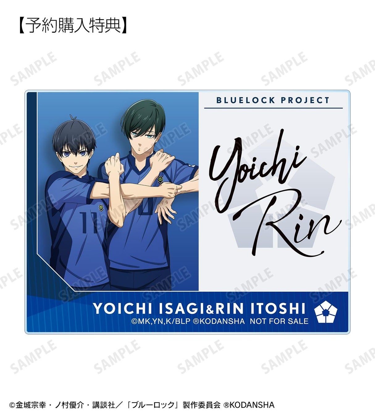当商品を1BOX、または単品にて1BOX相当数ご注文ごとに、予約購入特典として「描き下ろしイラスト 潔 世一&糸師 凛 試合前の準備中ver. アクリルネームプレート AMNIBUS限定特典」を付属いたします。