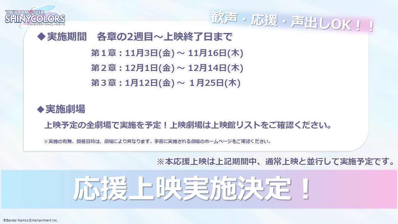 歓声、応援、声出しOK! 各章2週目より実施劇場でお楽しみください!