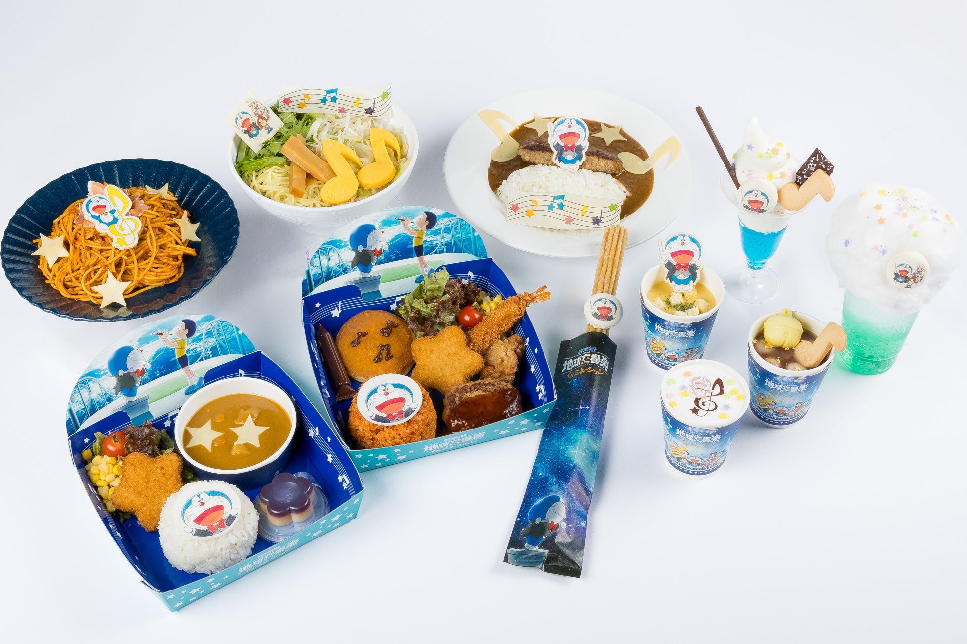 「ドラえもん♪オーケストラプレート」や「ドラえもんが奏でる♪メロディーハンバーグカレー」など11種のオリジナルフードメニューのほか、イルミネーション散策のおともにぴったりな光るグッズなど、ここでしか手に入らない16種のオリジナルグッズが登場します。
