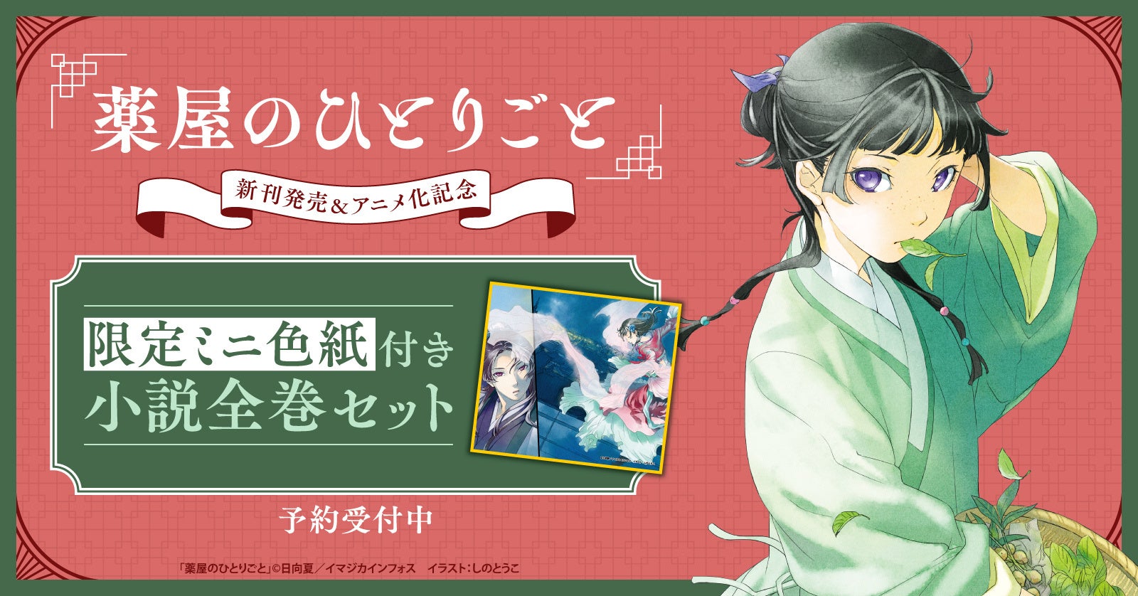 漫画全巻ドットコムでは『薬屋のひとりごと』新刊発売&アニメ化を記念して、原作小説全巻セットをご購入の方に、当店限定「ミニ色紙」をプレゼントいたします!