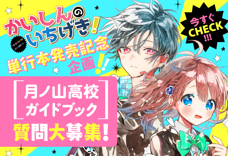 マンガアプリPalcy内にある「かいしんのいちげき!月ノ山高校ガイドブック質問大募集!」企画ページの「ファンレターを送る」機能を使って、質問を投稿してください。