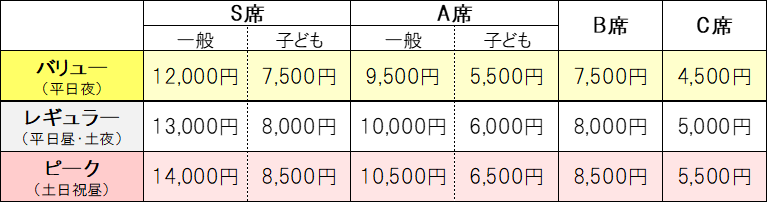※子ども料金はS席・A席の「ファミリーゾーン」のみ適用
