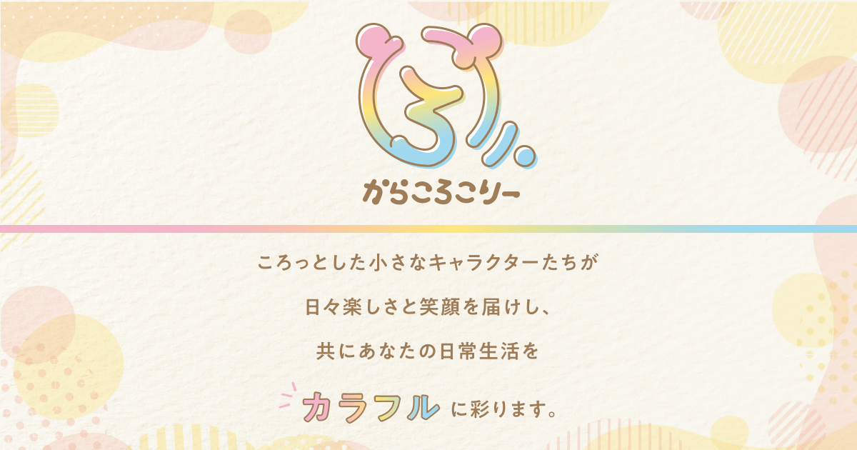 「からころこりー」とは、「ころっとした小さなキャラクターたちが日々楽しさと笑顔をお届けし、共にあなたの日常生活をカラフルに彩る」というコンセプトを元に、新たに設立した新規キャラクターIPをプロデュースするコンテンツレーベルです。