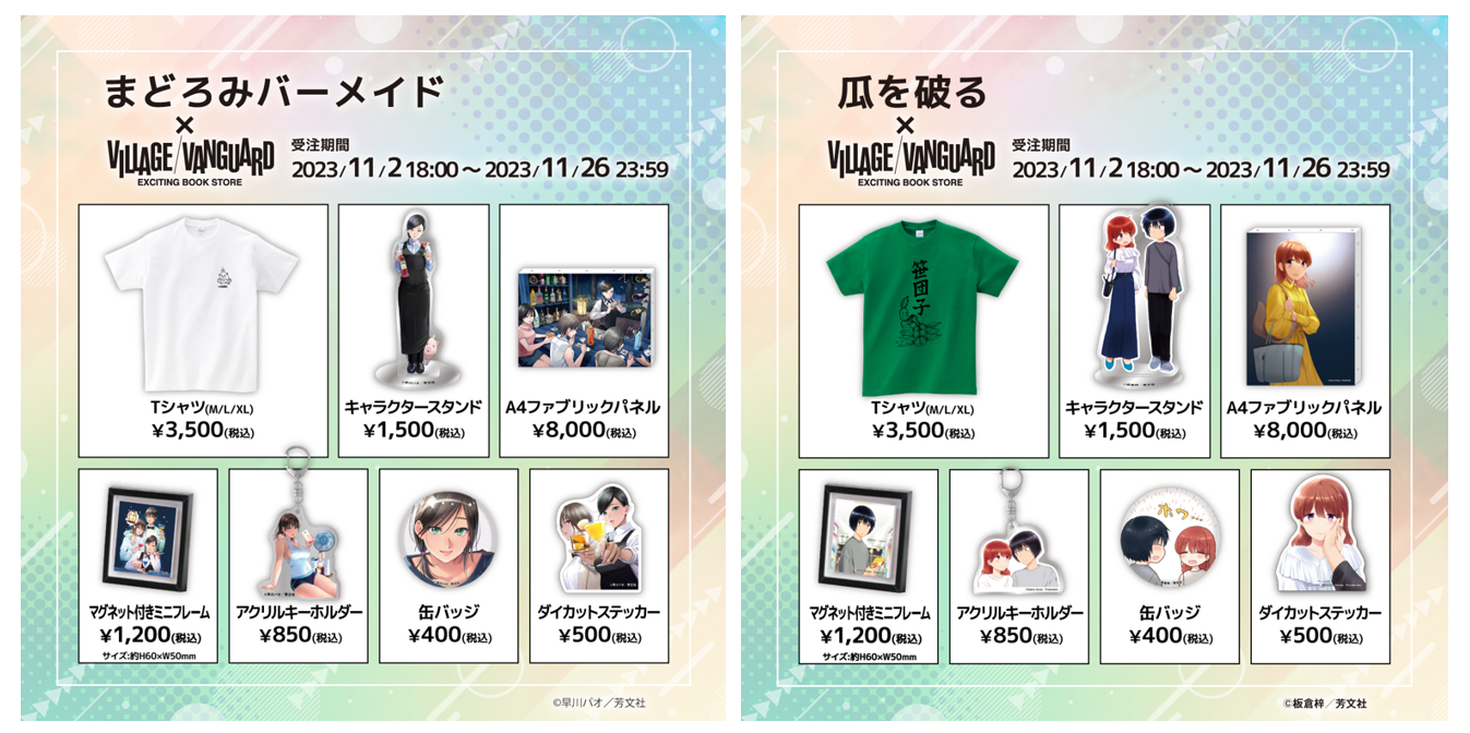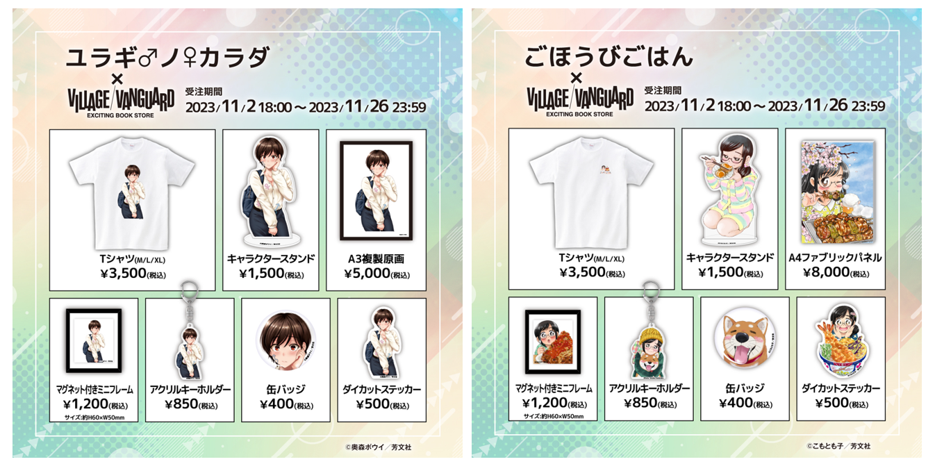 2023年11月2日(木)より、【まんがタイム・週刊漫画TIMES】とヴィレッジヴァンガードのコラボグッズがオンラインストアで発売開始!期間限定の受注販売となりますので、この機会をお見逃しなく!