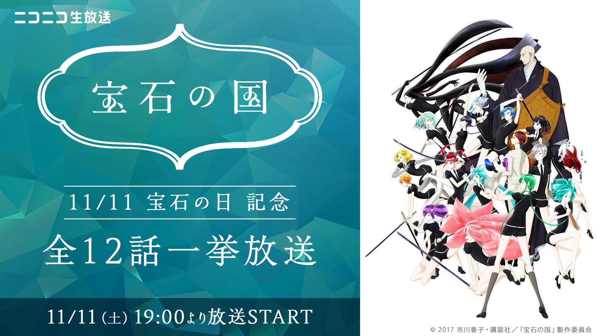 ニコニコ生放送では、2018年の“宝石の日”にも同作の無料一挙放送を実施。視聴者数は27万人を記録し、放送終了後に行った視聴満足度のアンケート調査では「とても良かった」「まぁまぁ良かった」を選択したユーザーが99.4%を占めるなど、大きな盛り上がりを見せました。今回、5年ぶりとなる本番組では、久しぶりの方も初めての方も一緒にコメントで盛り上がりながら『宝石の国』を楽しめる機会をお届けします。