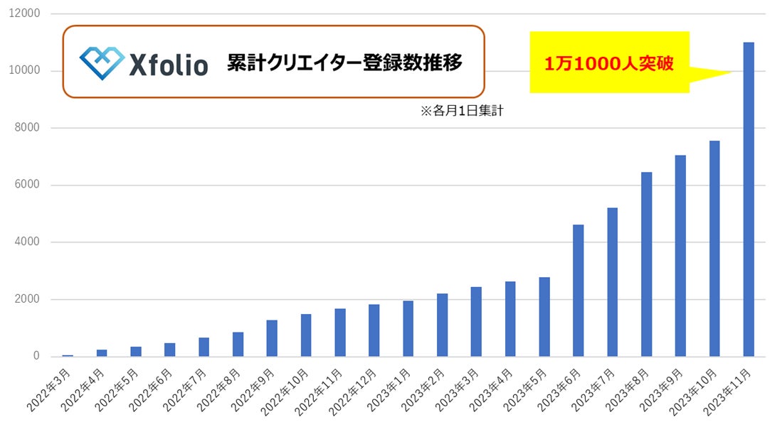 これら一連の対応をクリエイターの皆様にご評価いただき、またSNSを中心に好意的な拡散も多数いただいたことから、登録者が6ヶ月前と比較して約4倍と急増し、このたびクリエイター総登録数1万1000人を突破いたしました。