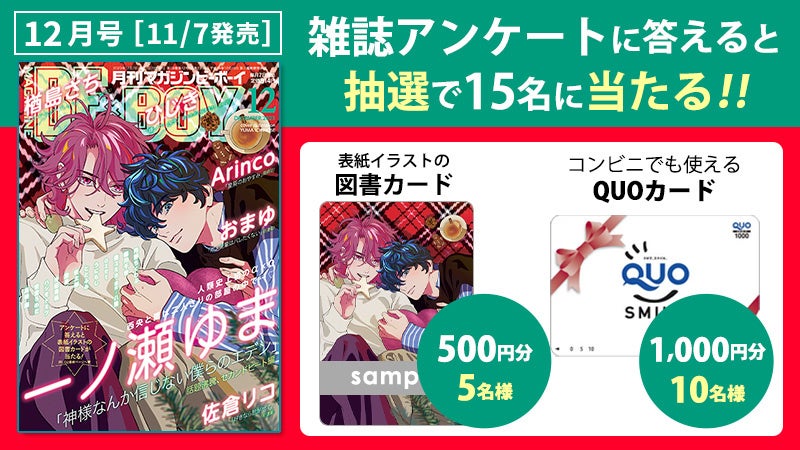 一ノ瀬ゆま先生の表紙イラスト図書カードが当たる愛読者プレゼント