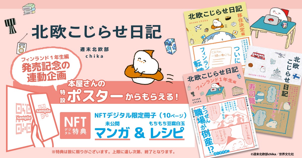 書籍『北欧こじらせ日記 フィンランド1年生編』の発売(11月8日)を記念して、書店限定 来店特典として先着2,000名様に『北欧こじらせ日記』未公開マンガ&レシピをプレゼントいたします。