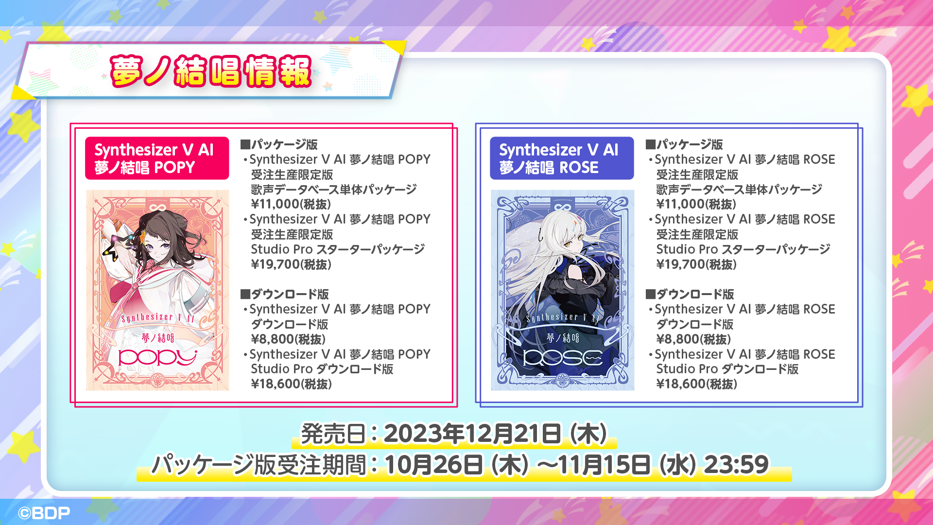 【新規情報】夢ノ結唱新作ソフト、Synthesizer V AI POPY/ROSE パッケージデザインを公開!