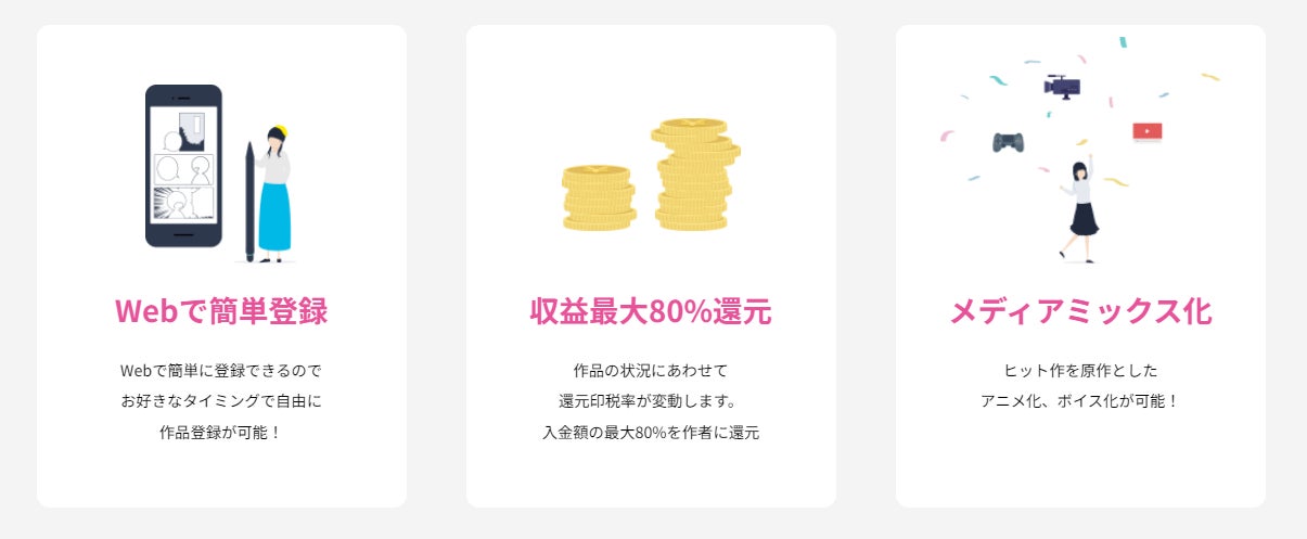 国内の大手電子書籍ストアでの配信はもちろん、人気次第ではボイス化、アニメ化も!