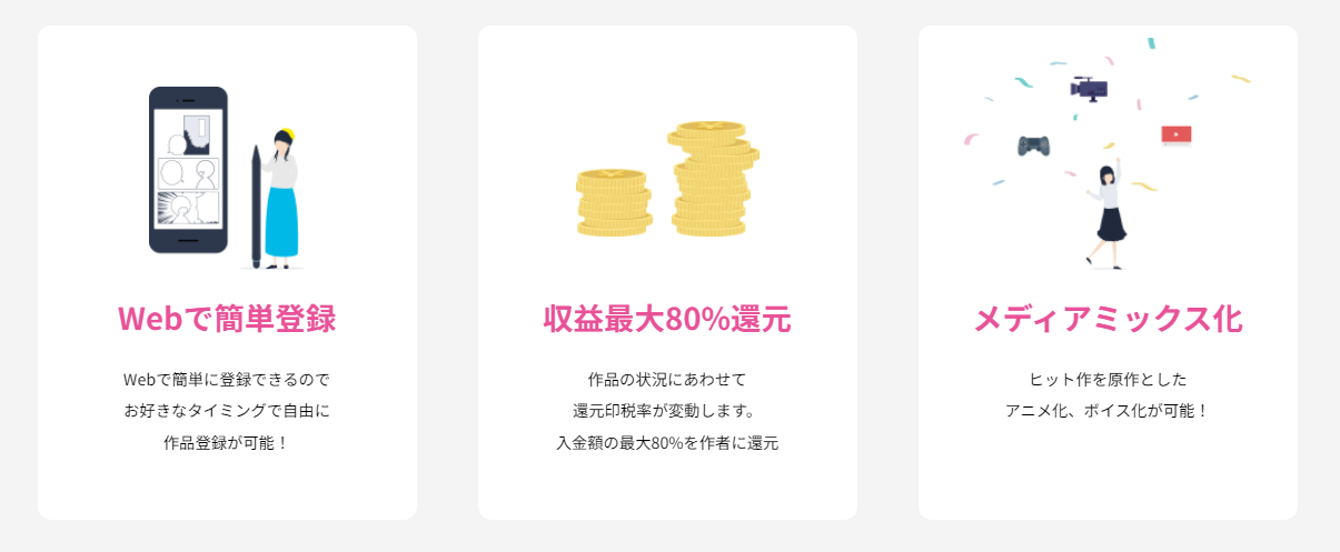 国内の大手電子書籍ストアでの配信はもちろん、人気次第ではボイス化、アニメ化も!