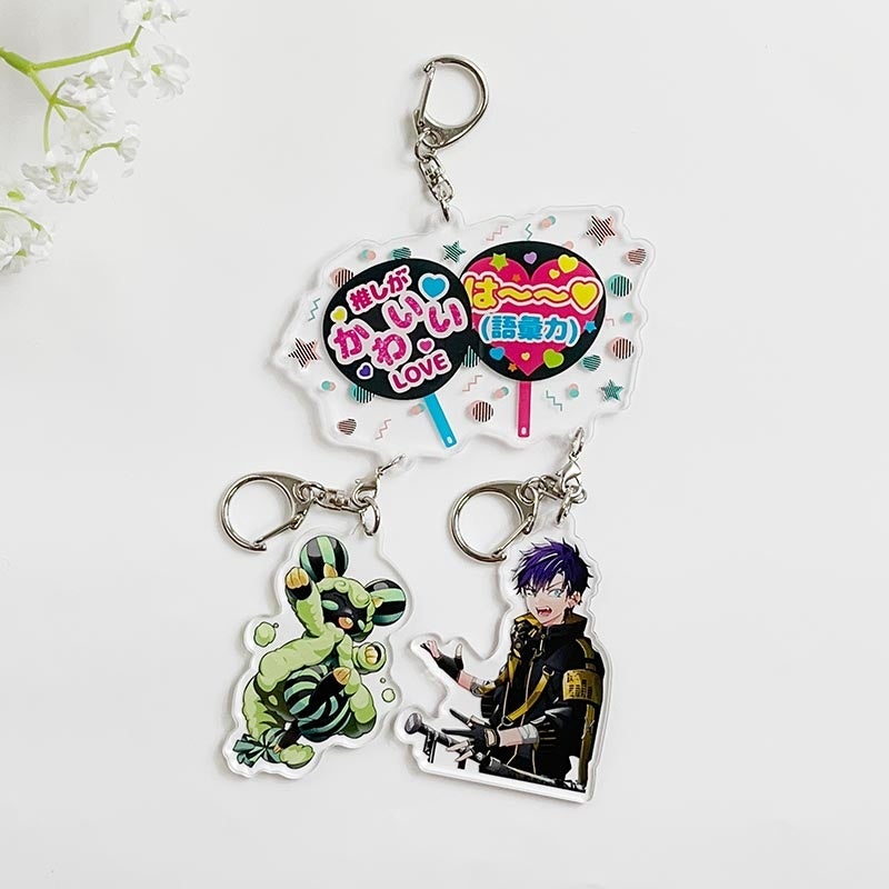 「なかよしチャーム」は、複数のアクリルキーホルダーやラバーストラップ、紐がついたぬいぐるみなどのグッズをまとめて付けられるカニカン付属のチャームのこと。同じ作品やグループの中に“推し”が複数いる方は飾り方に悩むことなく、アクリルキーホルダーなどをつけて飾ることができます。