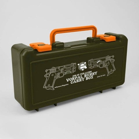 マガジンを抜いた状態で「ヴォーパル・バニー」がピッタリと入ります。全パーツに特注色を使用、軽量かつ丈夫な日本製プラスチックツールボックスです。