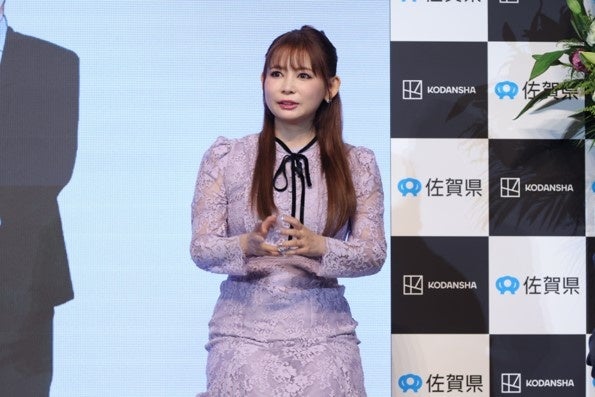 就任式後半では、「島耕作」の作者である弘兼憲史さんが登場し、山口知事・中川さんの3人でトークセッションを実施。山口知事が島さんを副知事に任命した狙いについて「佐賀県は民間企業経験者の採用率が全国でトップ。その中で、島耕作さんの幅広いこれまでの幅広い経験とグローバルな視点、チャレンジ精神を佐賀県に活かしていただきたい」と語りました。また、これまで民間企業で活躍してきた島さんが公務員になったことについて聞かれた中川さん。「島さんはどんなお仕事でも自分の考え方で意欲的に働く上、関わった様々な人に好かれる。舞台を佐賀に移しても素晴らしい仕事をしてくれると期待している」と自身の感想を語り、島耕作の新たな挑戦に期待を寄せていました。その後、連載40周年となる「島耕作シリーズ」の思い出について3人それぞれの思い出について聞かれ、中川さんは「幼稚園の頃から読んでいたが大人になった今でも新たな発見がある。島耕作は今も昔も人生の教科書です」とコメントし、終始島耕作愛にあふれている様子でした。
