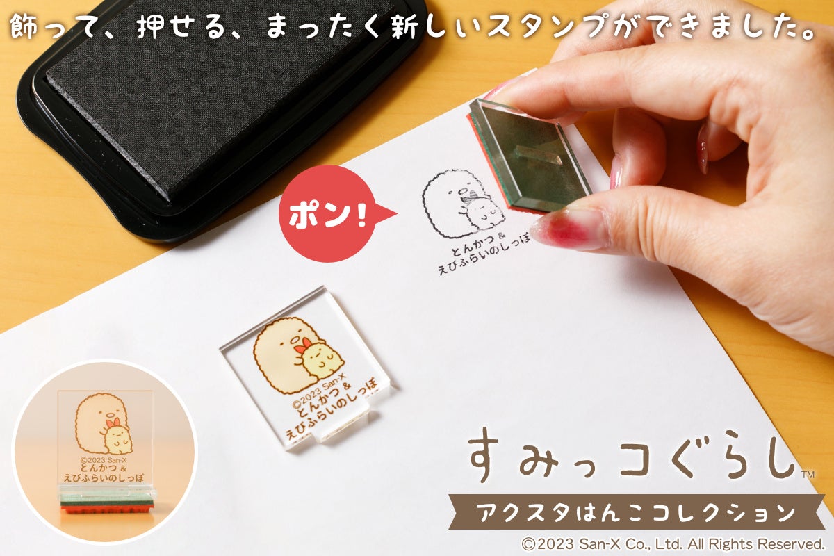 「すみっコぐらし アクスタはんこコレクション」は、自身も推し活をしているスタッフの発案から生まれた、推し活がはかどるまったく新しいハンコ。飾ったり、おうちやお出かけ先で写真に収めたりと推し活グッズとして大人気のアクリルスタンド(アクスタ)と、スケジュール帳やノートのデコレーション、お手紙や手作りカードづくりにも活躍するハンコが一体となったまったく新しいアイテムです。