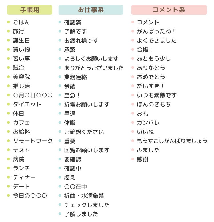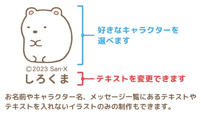 テキスト部分はお名前を入れたり、メッセージにしたり、テキストを入れずにイラストのみでつくることもできます。