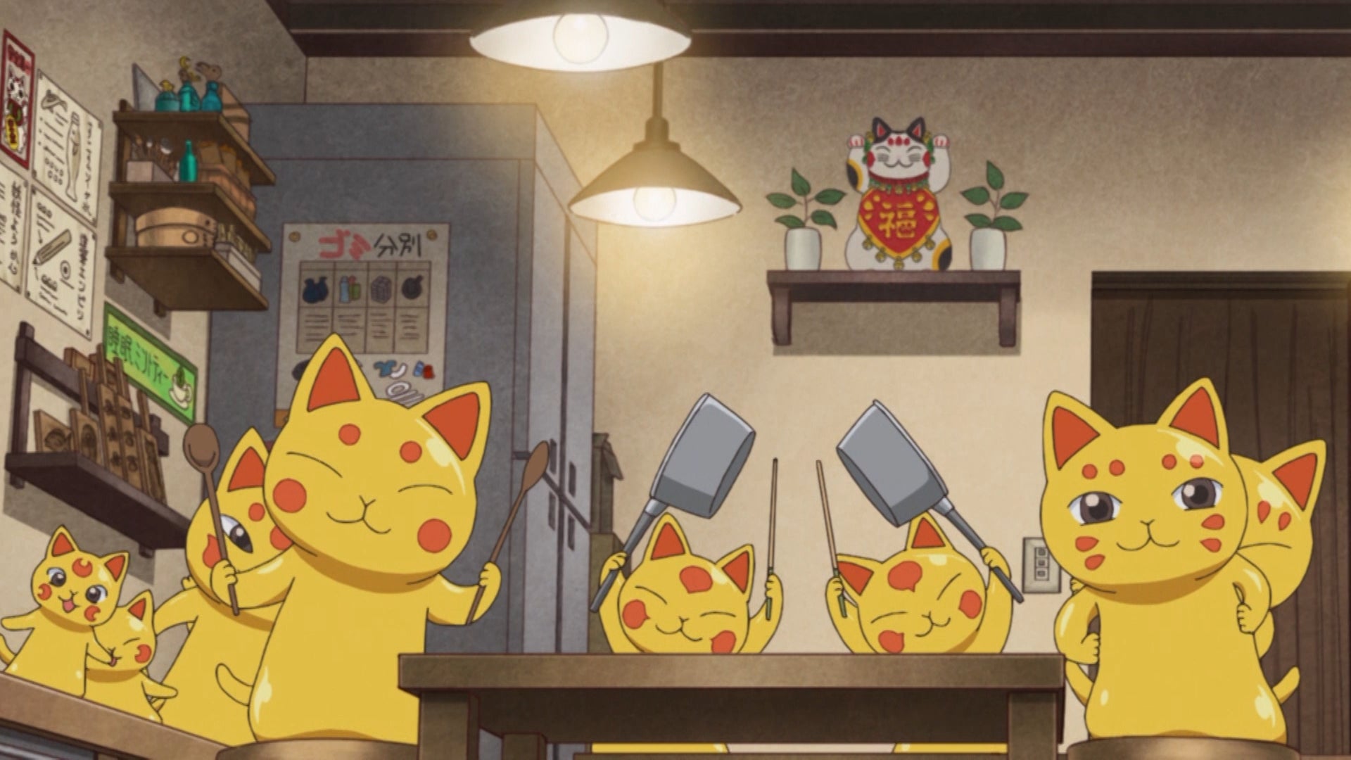 (109話より、「仲間に加わる【かるめ】」「ミュージックスナック担当【おと】」「ニャンダフルパフェを作る金色の招き猫たち」「音を奏でる金色の招き猫たち」「歌う【しらたま】」「歌う金色の招き猫たち」)