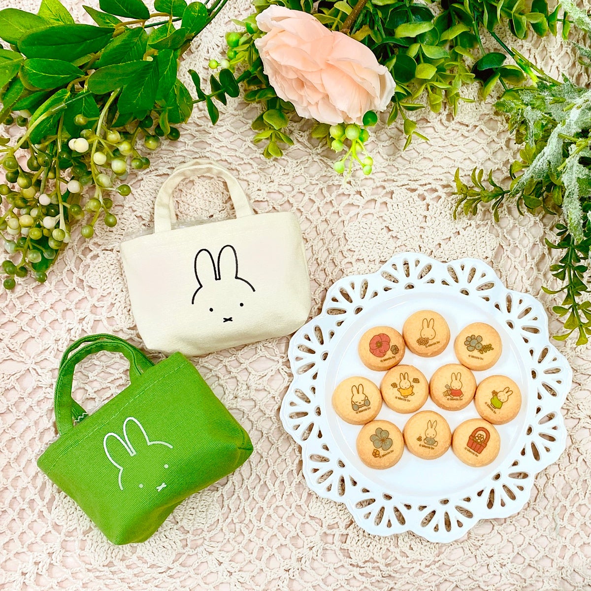 小さなクッキーが8個入ったミニトートバッグ(全2種)です。個包装で、どの絵柄のクッキーが出るかは開けてからのお楽しみ。フラワーミッフィーで発売中の「フラワーミッフィー 着せかえほわほわぬいぐるみ」に持たせて飾るのにもぴったりなアイテムです。