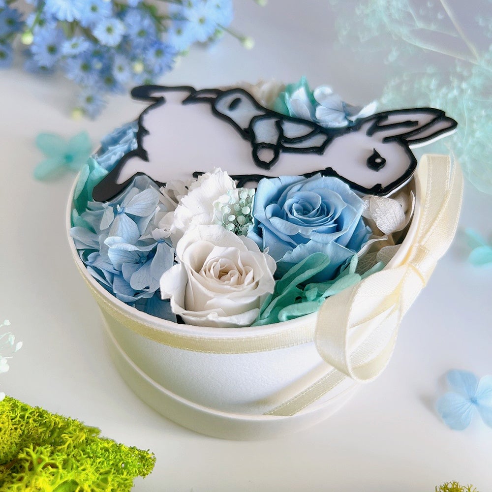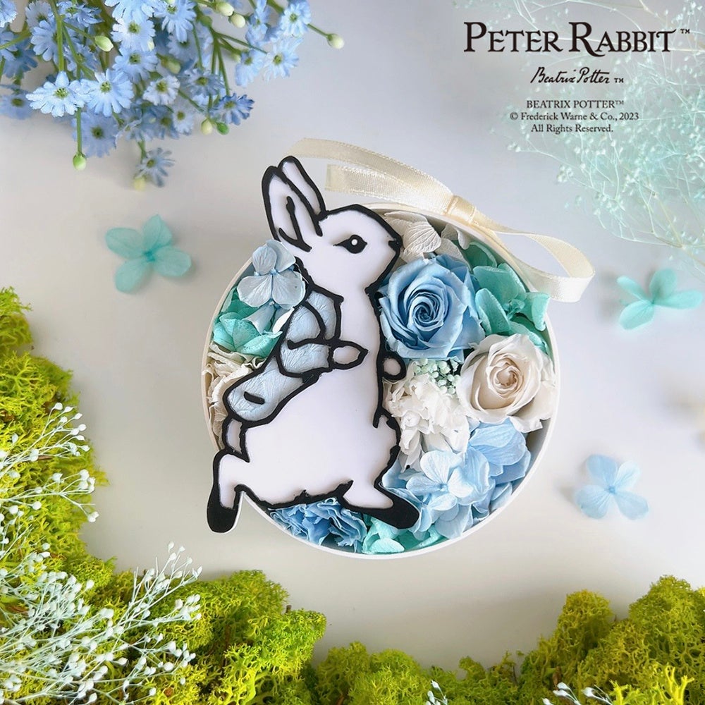自身も大のうさぎ好きであるマイペリドット店主が、クリスマスやバレンタインデー、冬の誕生日に贈れる、うさぎ好きのためのフラワーギフトを作りたいという想いから企画した、冬の到来に心を躍らせるピーターラビット™を描いた冬季限定のフラワーBOX。