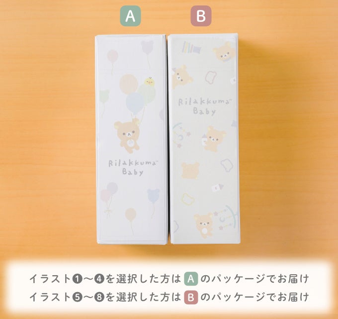 「リラックマベビー スリムボトル」は、とってもかわいいオリジナルパッケージでお届け。名入れ部分にメッセージを入れたりして、ちょっとしたプレゼントにもおすすめです。