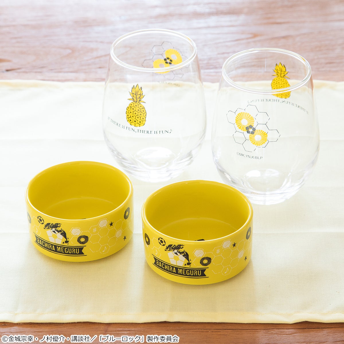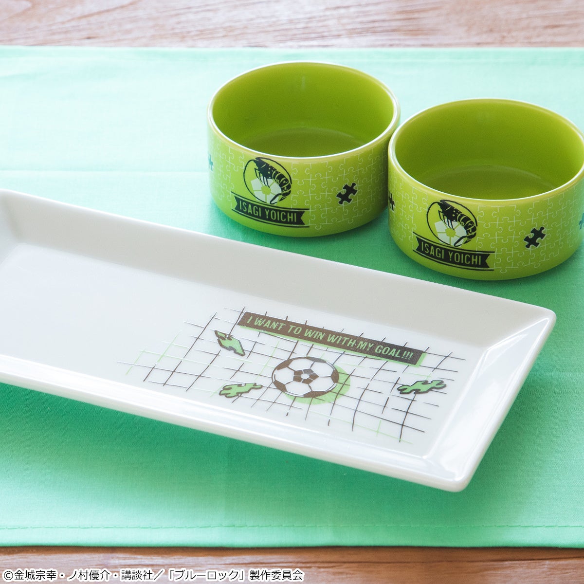 潔、蜂楽、凪、玲王の好きな食べ物・飲み物を楽しめる食器セット。