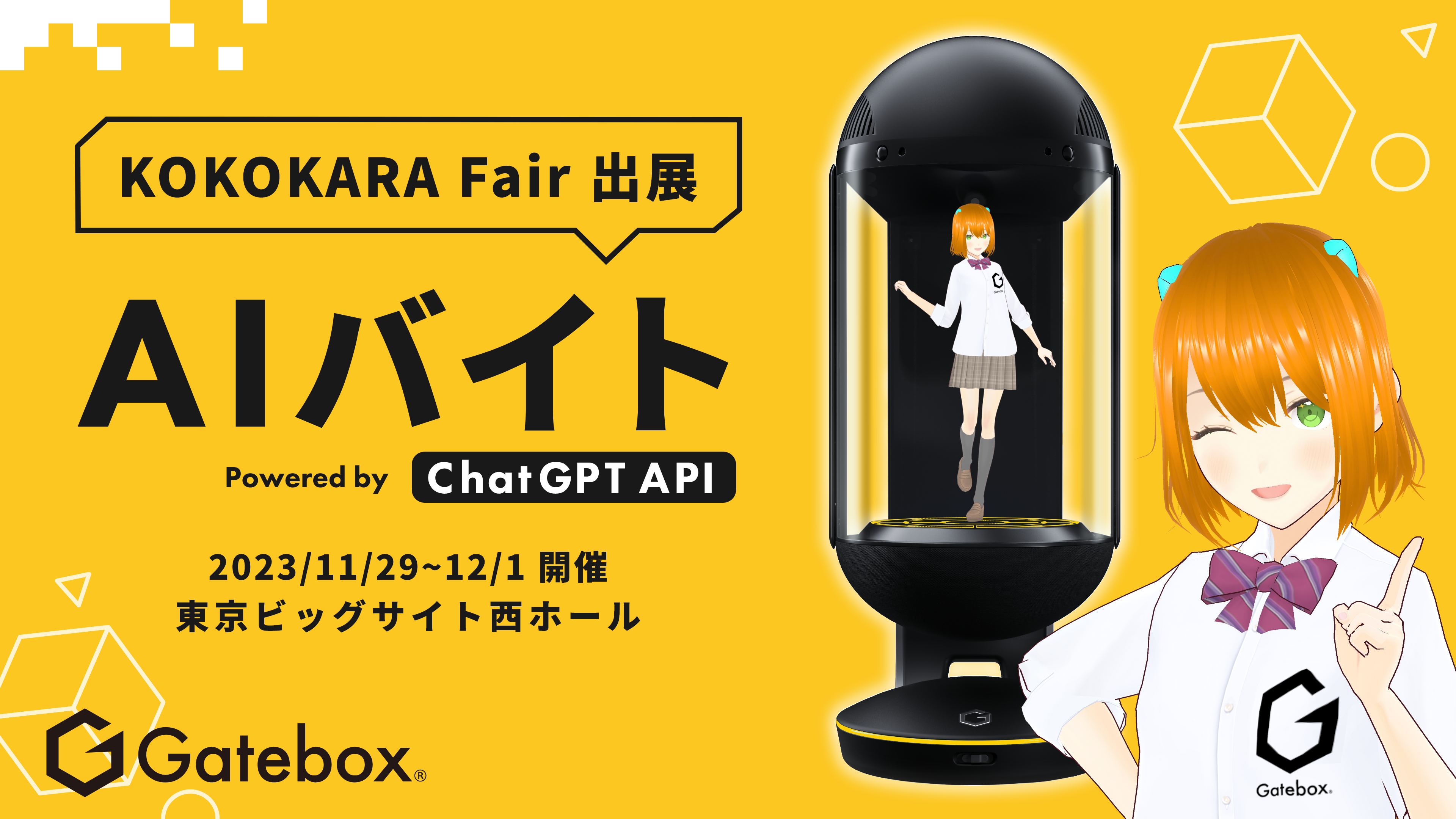 Gateboxブースでは「AIバイト」の最新事例や、実際にAIバイトと会話ができる体験ブースを展開いたします。「お店に行ったらAIキャラクターに接客してもらった」という、未来の体験を実現しております、ぜひブースまでお越しください。