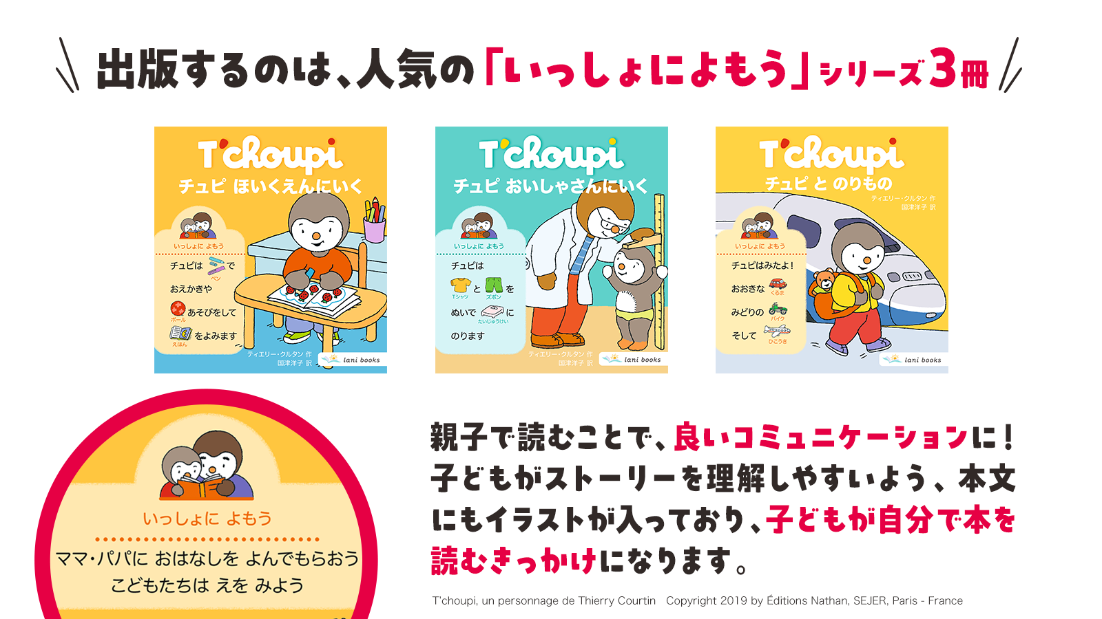 今回はチュピシリーズの中でも子どもたちに馴染みやすい「いっしょによもう」シリーズの3冊を翻訳し日本展開を開始します。