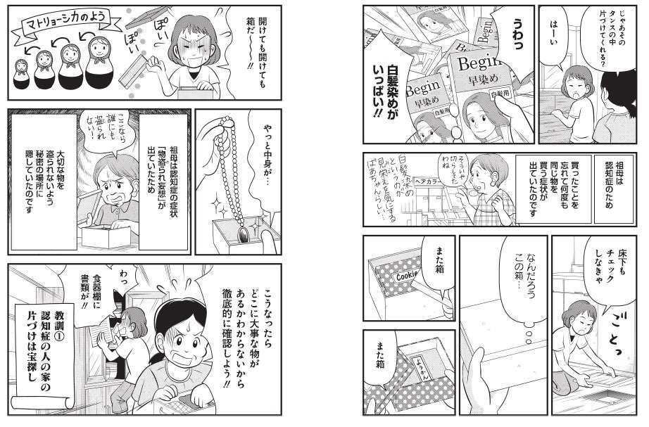 親子のぶつかり合い、大量の荷物、不用品の処分、空き家問題、相続権利、名義変更といった多くの人が直面する難問を乗り越えた「親家片」体験者たちの知恵と工夫は実用性だけでなく涙、笑いを誘います。