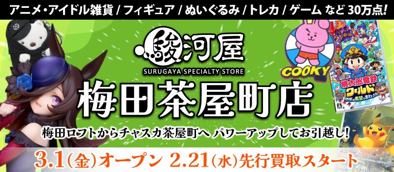「駿河屋 梅田ロフト店」が、2024年3月パワーアップして「駿河屋 梅田茶屋町店」として誕生します!