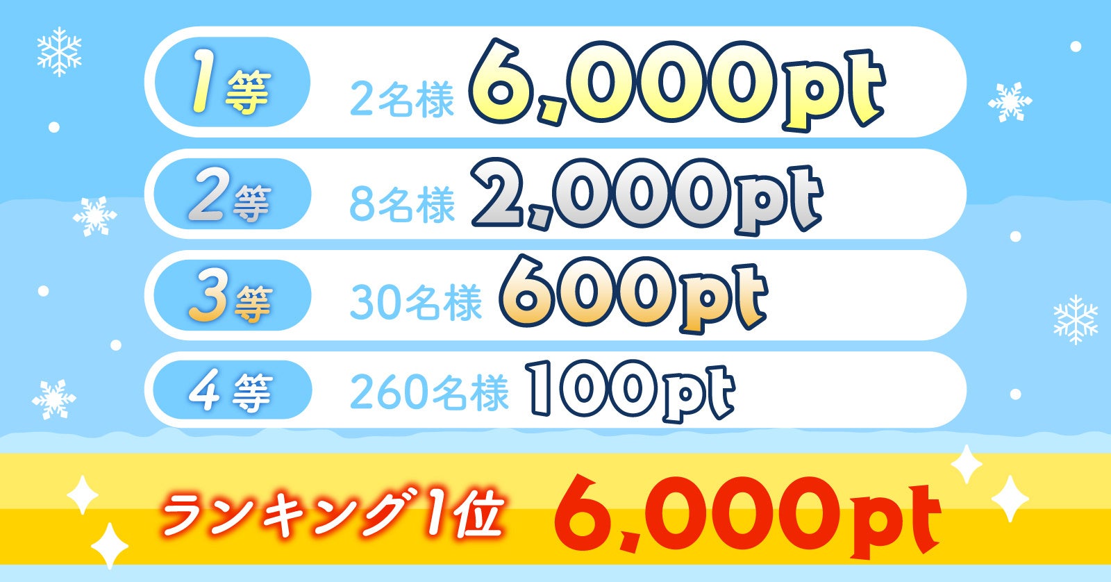 さらに、ランキング1位のユーザー様には抽選なしで6,000ポイントを進呈!
