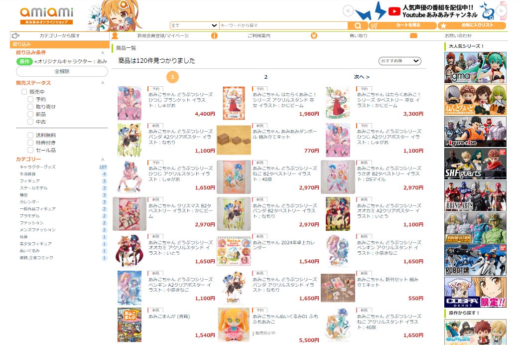 「あみあみ」では、あみこちゃんグッズを各種ご案内中。要チェックです!!