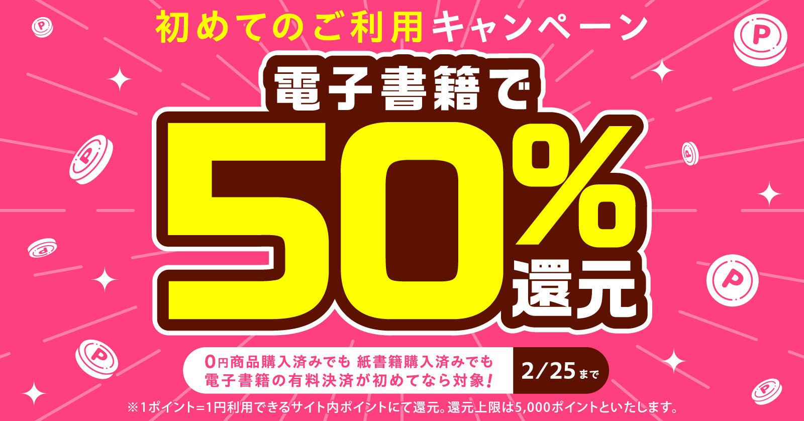 漫画全巻ドットコムで初めて電子書籍を購入される方へ50%ポイント還元!