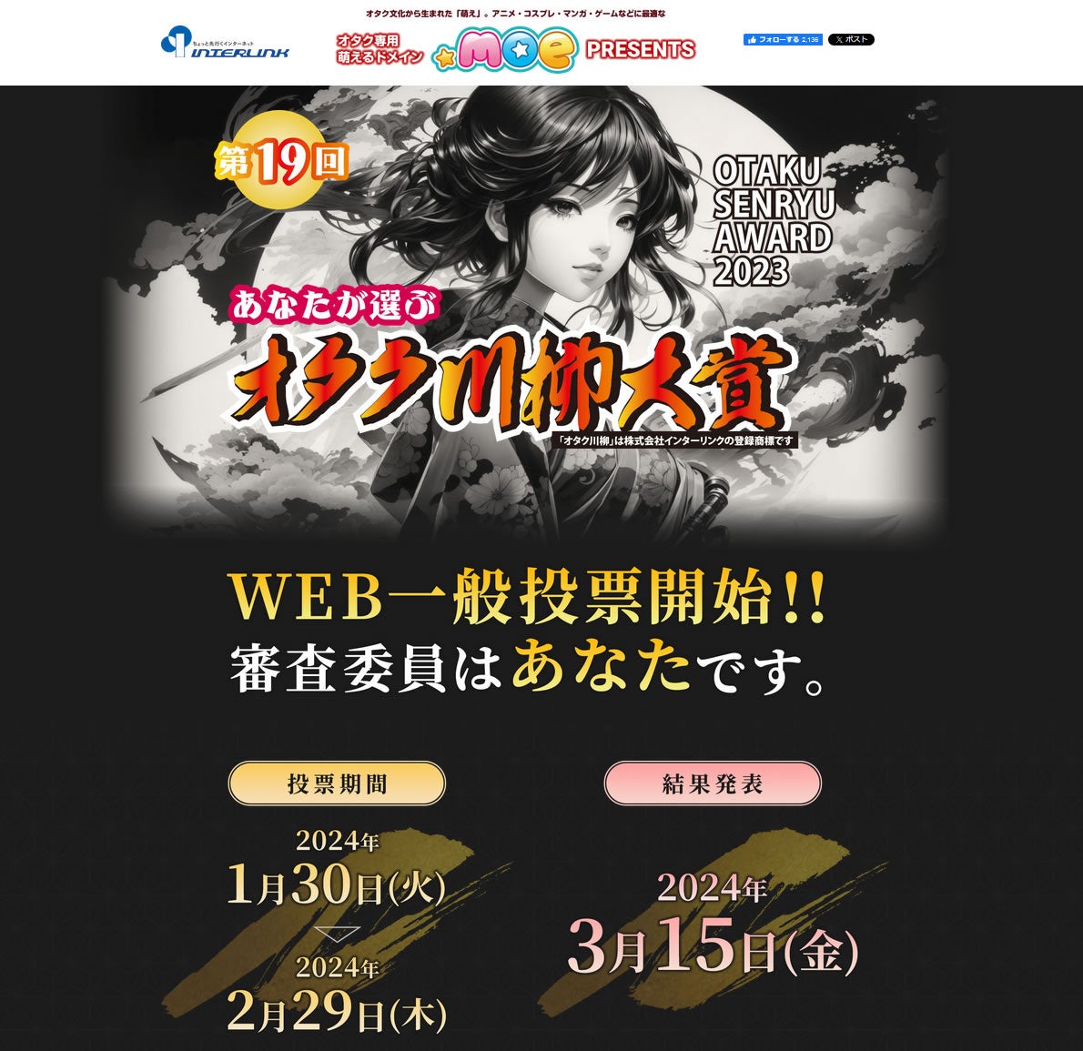 上級者向け(使う人のあまりいない)の特殊な(微妙な)サービスを提供する、インターネットサービスプロバイダーの株式会社インターリンク(東京都豊島区、代表取締役:横山正)は、「第19回あなたが選ぶオタク川柳大賞」~オタク専用萌えるドメイン「.moe」PRESENTS~(以下、オタク川柳)の作品応募時に、年間の推し活代に関するアンケートを実施しました。
